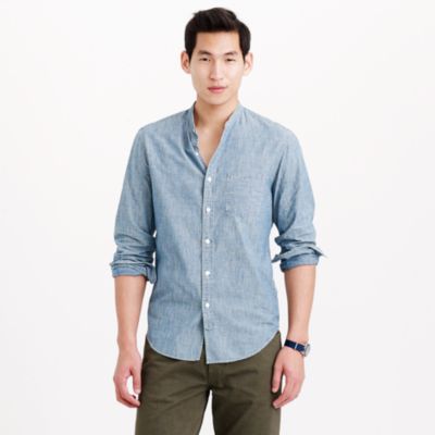 For a bit of added style, you can take something from Agyesh’s playbook: cut the collar off and give the shirt a band collar. If you want a clean finish, give the shirt to an alterations tailor and have it professionally done. If you’re OK with something a little rougher, however, you can just do it at home. Cut the collar off with a pair of scissors and stay close to the seam (but don’t go below the seam, as you want the collar band to stay intact). Then burn off any loose threads with a lighter. In the end, it should look something like this.