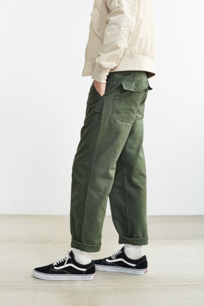 • Full-Cut Pants: For casual pants, try chinos and fatigues. They’re a little easier to wear than jeans since they don’t carry the same ‘90s baggage (although fuller cut jeans work well with more traditional workwear styles). I like mine to sit a little cropped, such that the hem terminates right around the ankles. That way, the fuller cut looks intentional (if there’s fabric pooling around your feet, it’ll look like you need to go to the tailors). Simple cuffing is a good way to get the slightly shorter look, although you can also try a loose pinroll to give the leg line a little shape.